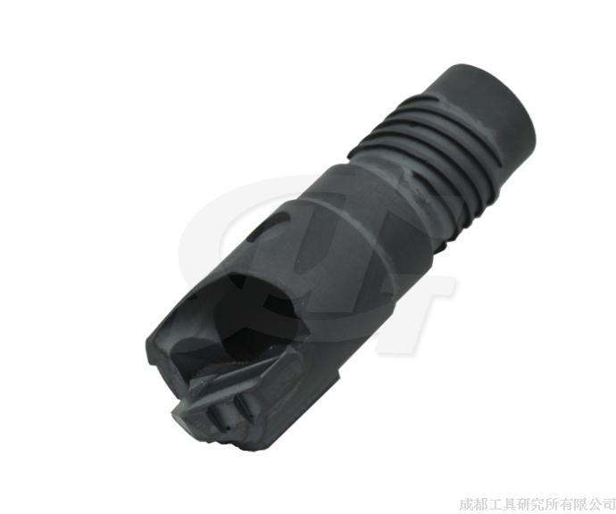 成都工具研究所有限公司长期从事内排屑深孔刀具的开发,致力于为用户深孔加工提供系统解决方案。近年来依托我公司在材料、涂层和深孔刀具设计制造等方面的综合优势,开发出了系列机夹式内排屑深孔钻。该深孔钻采用了新研制的高性能硬质合金基体材料和新的刀片表面涂层工艺,保证了刀具的高的切削寿命;通过对刀片几何形状、断屑槽形的优化设计,大大提高了刀片的切削强度以及刀具的切削效率,保证了高效深孔钻削加工的要求;通过对刀体结构的优化设计,保证了超长深孔加工的直线度,加工深孔零件的长径比达到国际先进水平。成都工具有限公司生产的机夹式内排屑深孔钻直径范围为φ25~φ160mm,并可生产各种规格的机夹式扩孔钻。φ25~φ65的机夹式内排屑深孔钻采用沉孔螺钉直接将可转位刀片固定在刀体上的结构形式;φ65以上的机夹式内排屑深孔钻采用带刀座的结构形式,沉孔螺钉直接将可转位刀片固定在刀座上,同时刀座用螺钉固定在刀体上。针对特殊难加工材料以及用户加工条件的不同,专门开发了不同的刀片材质、不同的刀片涂层工艺、不同的刀片几何形状、不同的断屑槽型以及不同的刀具结构,最大限度地满足各种用户的不同需求。机夹式内排屑深孔钻加工孔的精度达到IT10级,表面粗糙度达Ra3.2,可替代进口产品。