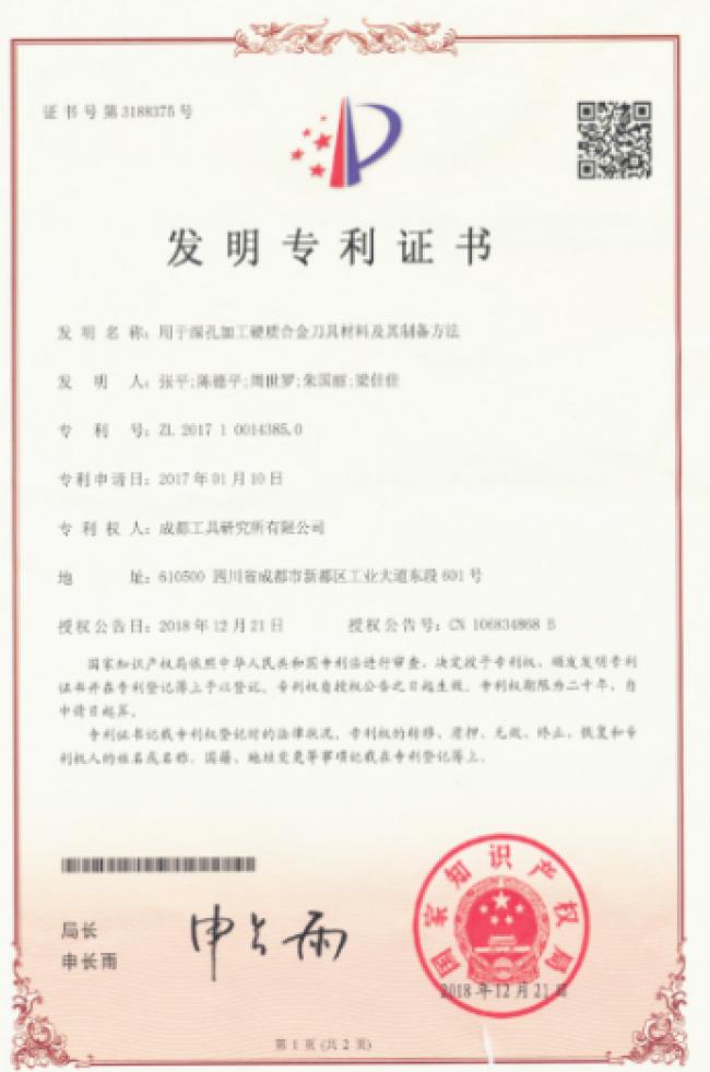 ※自主知识产权的硬质合金基体材料和涂层,保证钻削的稳定性和高效性。