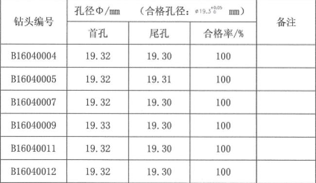 实验结果,我司钻头所有孔径均满足19.30(0~+0.05),合格率达100%,满足高精度使用要求。 |