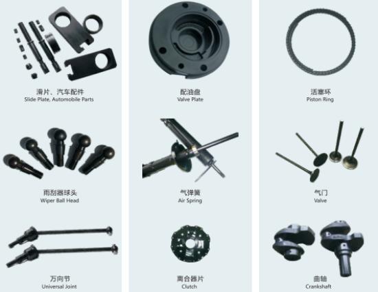 汽车、摩托车、机车、纺织机械、工程机械、石油机械、化工机械、军工、航空航天、机床、仪器仪表、模具、工具等。